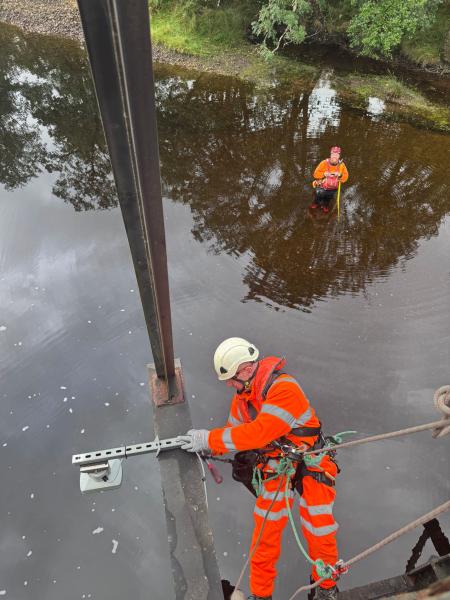 At Carron Viaduct, AIM Rope Access recently assisted with the replacement of a vital flood telemetry sensor. Using our rope access expertise, we enabled safe and efficient access to the structure, allowing engineers to remove the old unit and install the new sensor in a challenging position above the river. This upgrade ensures reliable monitoring of water levels and flood risk, providing essential protection for local infrastructure and communities. The project highlights our ability to deliver specialist support in complex environments while maintaining the highest standards of safety and efficiency