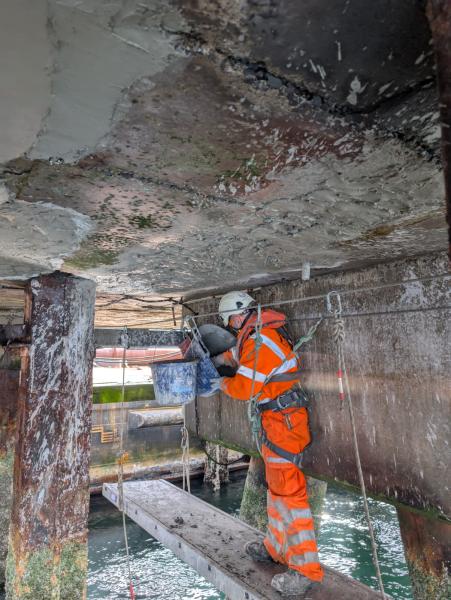 At Fairley Quay, AIM Rope Access was tasked with carrying out essential concrete repair works to maintain the structural integrity of this busy waterfront facility. Our team of rope access specialists provided safe and efficient access to challenging areas of the quay wall, enabling thorough inspection, preparation, and repair. Works included removal of defective concrete, surface preparation, and reinstatement with high-quality repair materials designed to withstand the harsh marine environment. By combining technical expertise with rope access efficiency, we ensured minimal disruption to operations while delivering durable, long-lasting repairs that safeguard the quay for years to come.